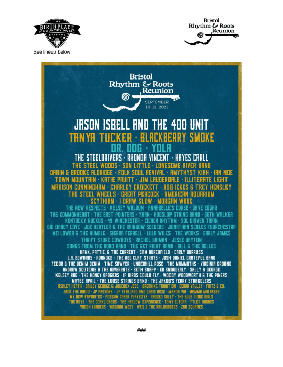 2021 Bristol Rhythm Roots Reunion Lineup Announced