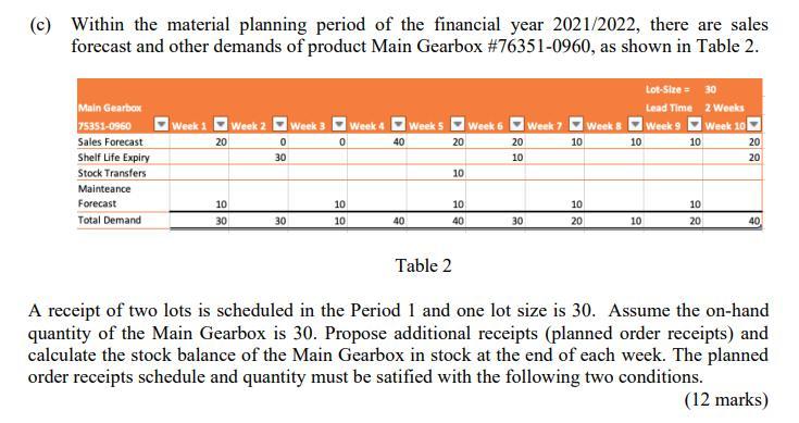 C Within The Material Planning Period Of The Fin Chegg Com